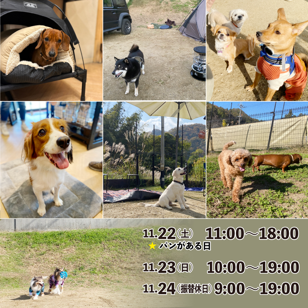 2025年11月19日 / 営業カレンダー11月第4週のスケジュール 週末は連休ですね。晴れ予報です🌟連休中キャンセルあり、キャンプドッグラン空きあります。ご予約お待ちしていまーす! 確定している営業日時はこのとおり。そのほかはご予約状況に準じます