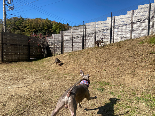 各エリアのサイズは平均200㎡。元気な犬はAB、シニアやパピー、関節に不安がある犬はCエリアがおすすめ。坂を走って大臀筋を育てよう!
